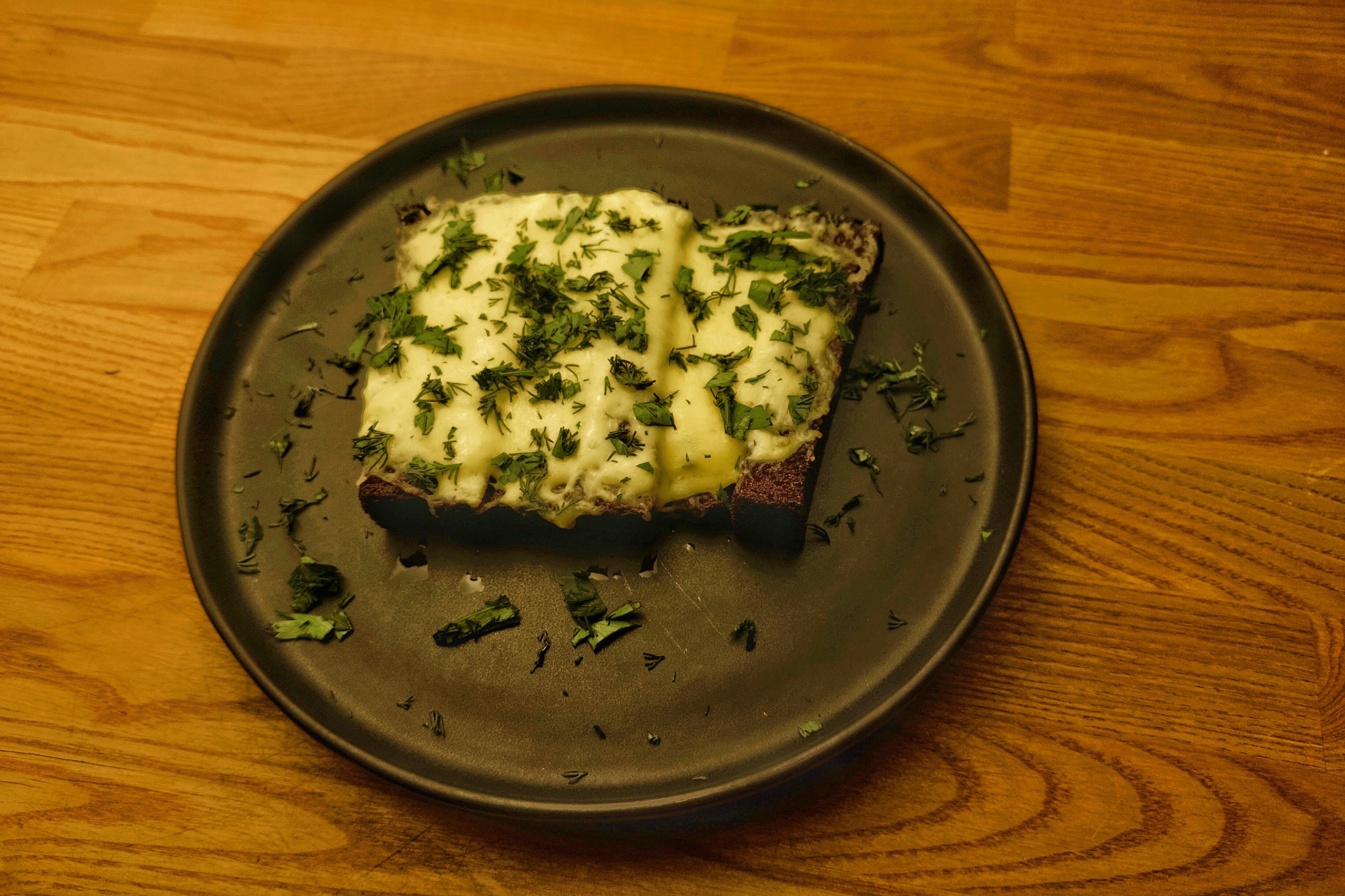 Хлеб бородинский, сыр моцарелла, майонез, соус чесночный, зелень (петрушка, укроп)