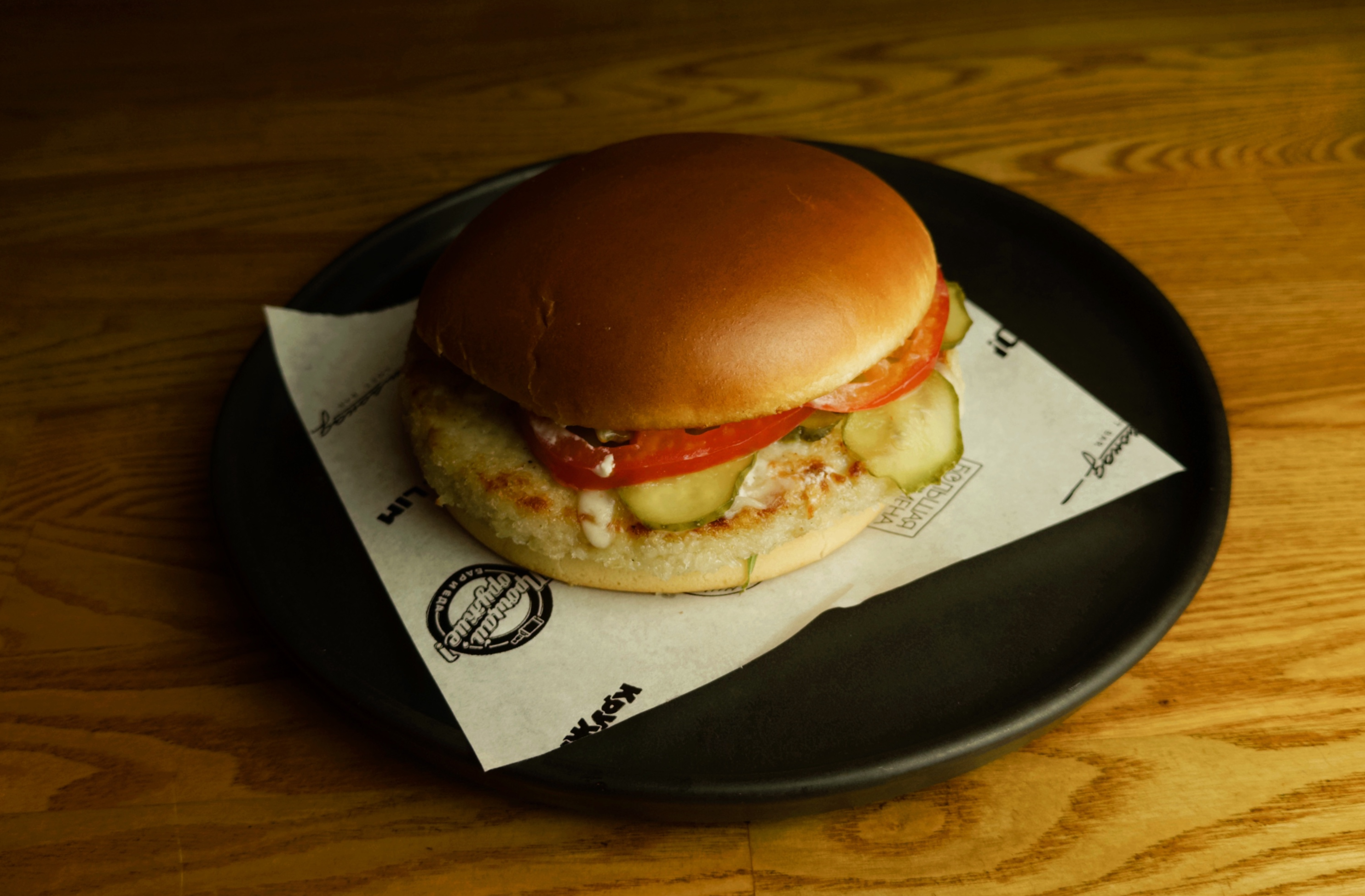 В этом бургере сочетаются нежная куриная котлета, сливочная моцарелла, сочные помидоры и ароматная зелень, а пряные нотки добавляют необычные соусы. Всё это великолепие аккуратно упаковано в мягкую булочку.